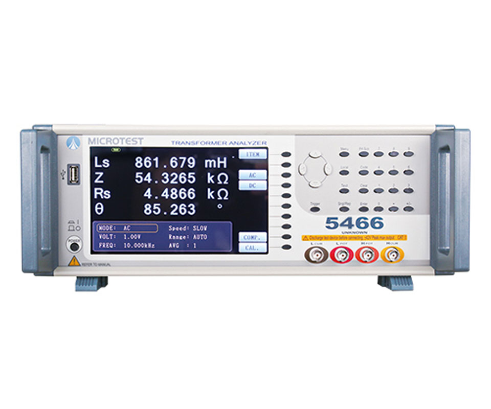 益和 5466 變壓器, 測試頻率為 10Hz-500kHz,測試點位為48 點。基本精準度 ±0.1%,搭配F5648測試治具(含100mA直流偏置電流)。內(nèi)建可儲存128組測試檔案。支援RS-232、Handler、LAN、USB Host等介面。適用于各種變壓器進料、檢驗、品保等檢測部門。